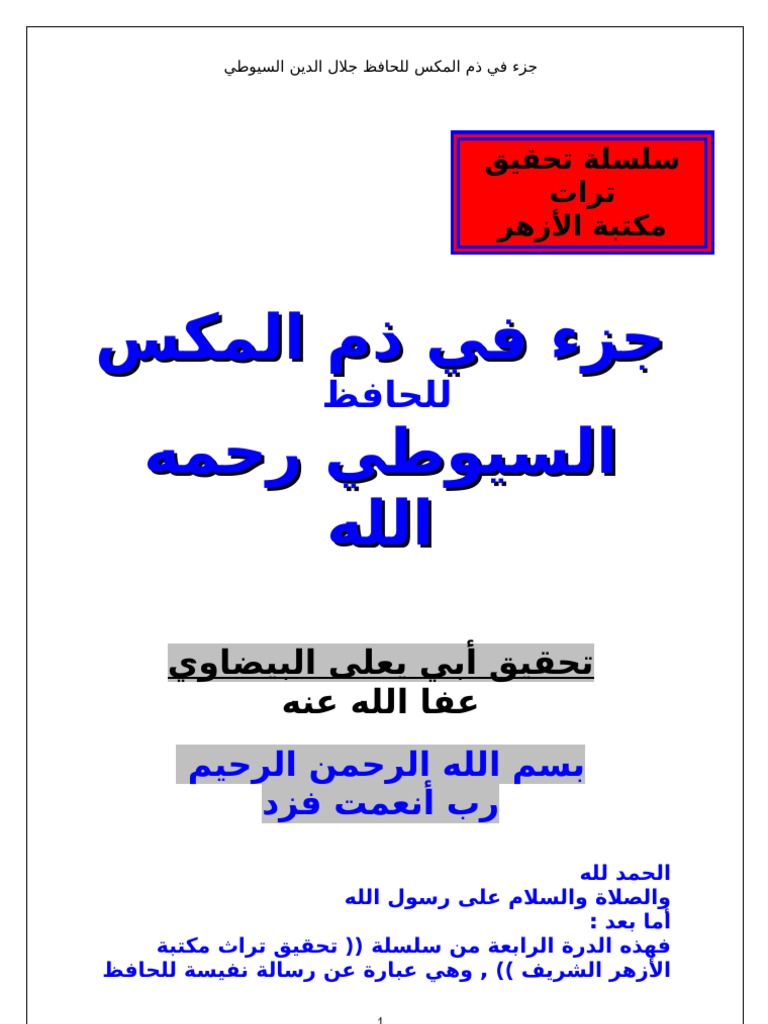 السيوطي جزء في ذم المكس