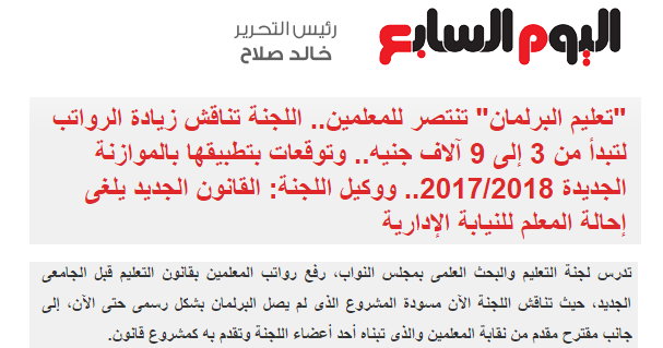 مفاجأة للمعلمين باليوم السابع زيادة رواتب المعلمين لتبدأ من 3 الى 9 الاف جنيه بنظام النقاط والتطبيق بموازنة العام الجديد2017 2018
