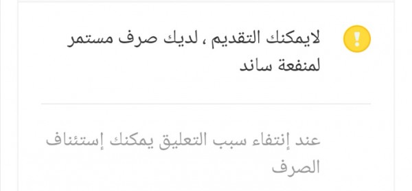 O Xrhsths جودي غير Sto Twitter قدمت بساند وطلع لي كذا ايش يعني لايمكنك التقديم لديك صرف مستمر لمنفعة ساند مع العلم لم يصرف لي شي