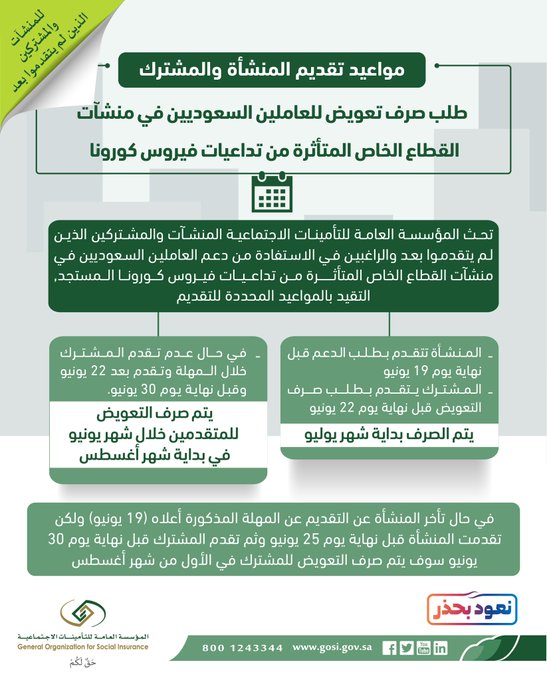 التأمينات الاجتماعية On Twitter الرسالة تفيد بتعليق اشتراكك في نظام التأمينات بناء على اختيار منشأتك وذلك للاستفادة من مبادرة دعم العاملين السعوديين في المنشآت المتأثرة ويمكنك التقدم بطلب صرف التعويض من خلال
