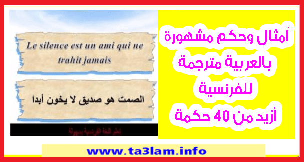 أمثال وحكم مشهورة بالعربية مترجمة للفرنسية أزيد من 40 حكمة