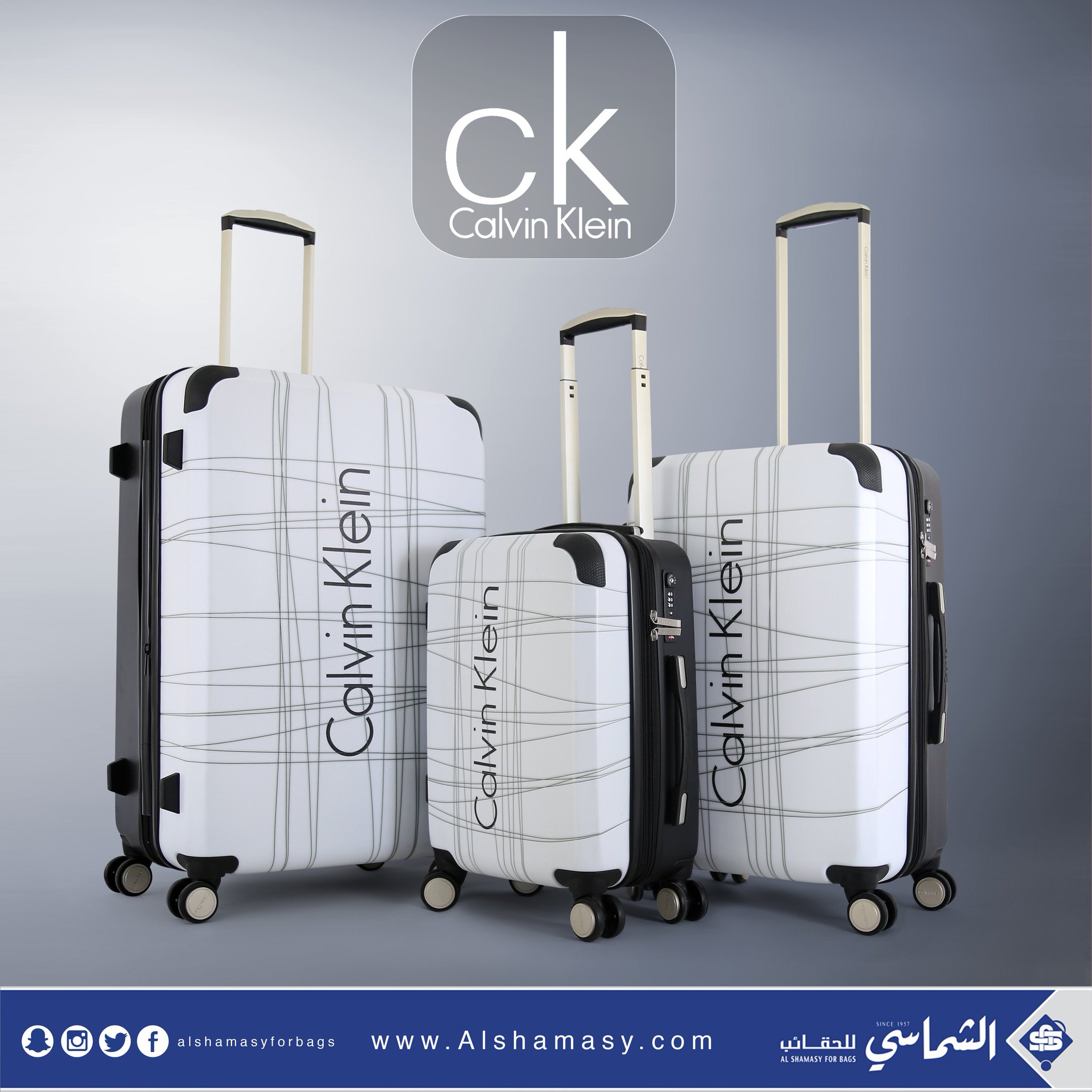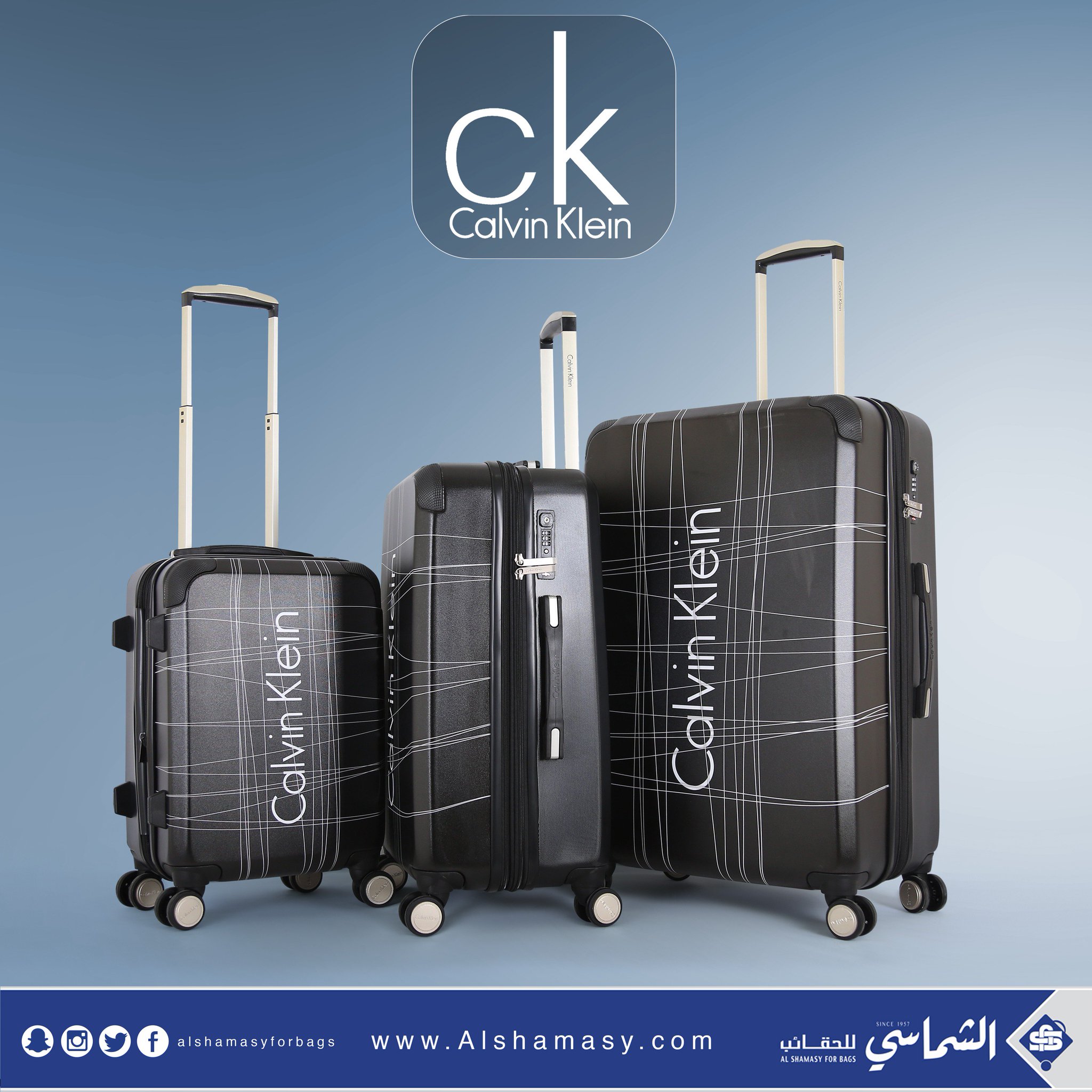 الشماسي للحقائب On Twitter طقم حقائب ماركة كالفن كلاين ثلاث شنط سفر مصنوع من البولى كاربون قفل رقمى عالمي Tsa 4كفرات دواره بها توسعة اضافية عدا الصغيره مقسمة من الداخل إلى قسمين