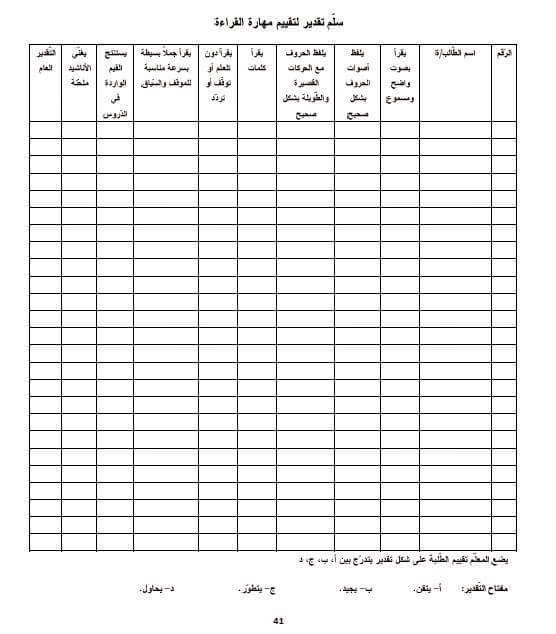تقييم المهارات سلالم التقدير لكل مهارة من مهارات اللغة العربية كما هي موجودة في نهاية دليل مبحث اللغة العربية الموقع التعليمي Ademweb Com
