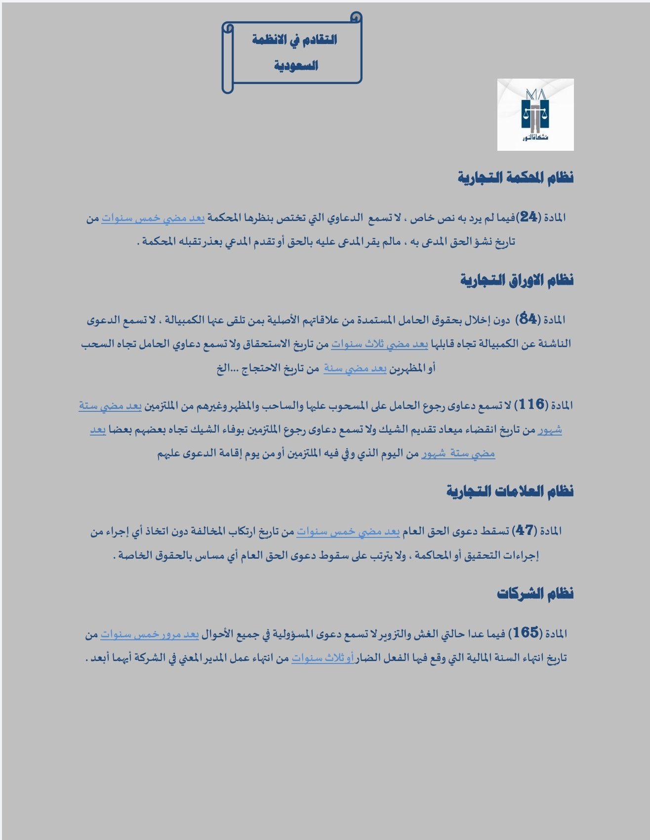 من قانون التجارة بأن كل دعوى ناشئة عن سند السحب تجاه قابله تسقط بالتقادم بمضي خمس سنوات من تاريخ الاستحقاق ويسري هــذا الحكــم على السنـد لأمــر كمبيالة.