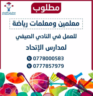 وظائف شاغرة لدى مدارس الاتحاد في التخصصات التالية وظائف في الاردن والخليج