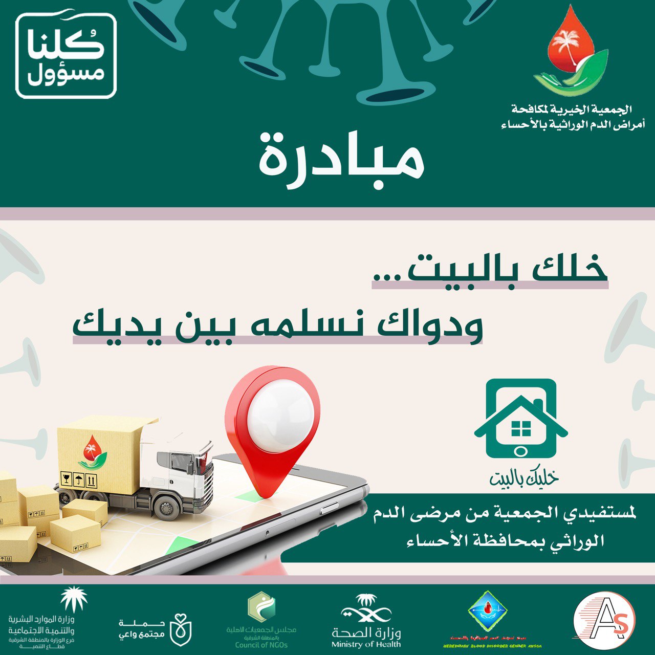 جمعية مكافحة أمراض الدم On Twitter اطلقت الجمعية مبادرة خلك بالبيت ودواك نسلمه بين يديك لمرض الدم الوراثي بالأحساء بالتعاون مع مركز أمراض الدم الوراثية بالأحساء ورعاية رجل الأعمال أ سعد الشدي