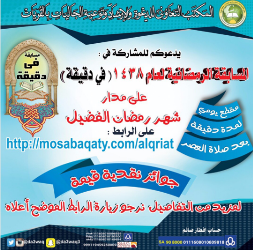 مسابقة رمضان 1438. هذه الصفحة خاصة باخبار وجديد مسابقة رمضان الكبرى المنظمة من طرف فوج الامل الورثيلاني بلدية بني ورثيلان للكشافة. اخبار و رويداد مشاهده بيشتر. صاحب مسابقة وتريد نشرها. مسابقة يومية تأتيكم عبر إذاعة القرآن الكريم عند الساعة 11 05 ليلا إعداد وتقديم سلطان الربيع إخراج ماجد الدباس.