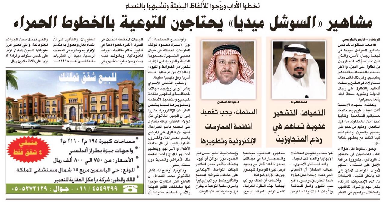 جريدة الرياض مشاهير السوشل ميديا يحتاجون للتوعية بالخطوط الحمراء