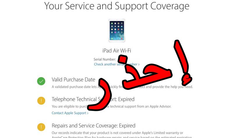 تحقق من ضمان جهازك الايفون او الايباد او الايبود او الماك واعرف تاريخ انتهاء صلاحيته