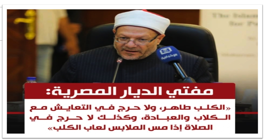 لعاب الكلب لايبطل الصلاة والكلب طاهر ولاحرج فى تربيته مفتى الديار المصرية