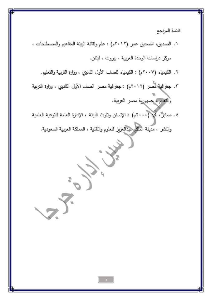 بحث عن البيئة للصف الأول الاعدادي شامل المصادر واجابة اسئلة البحث