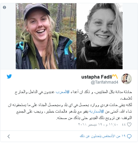 اليمن العربي الدنمارك اتهام أشخاص نشروا فيديو مقتل سائحتين بالمغرب