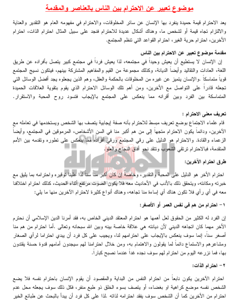 موضوع تعبير عن الاحترام بين الناس موقع محتوى