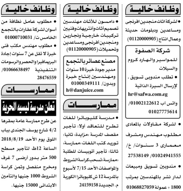 وظائف الاهرام الجمعه 18 10 2019 وظائف خاليه