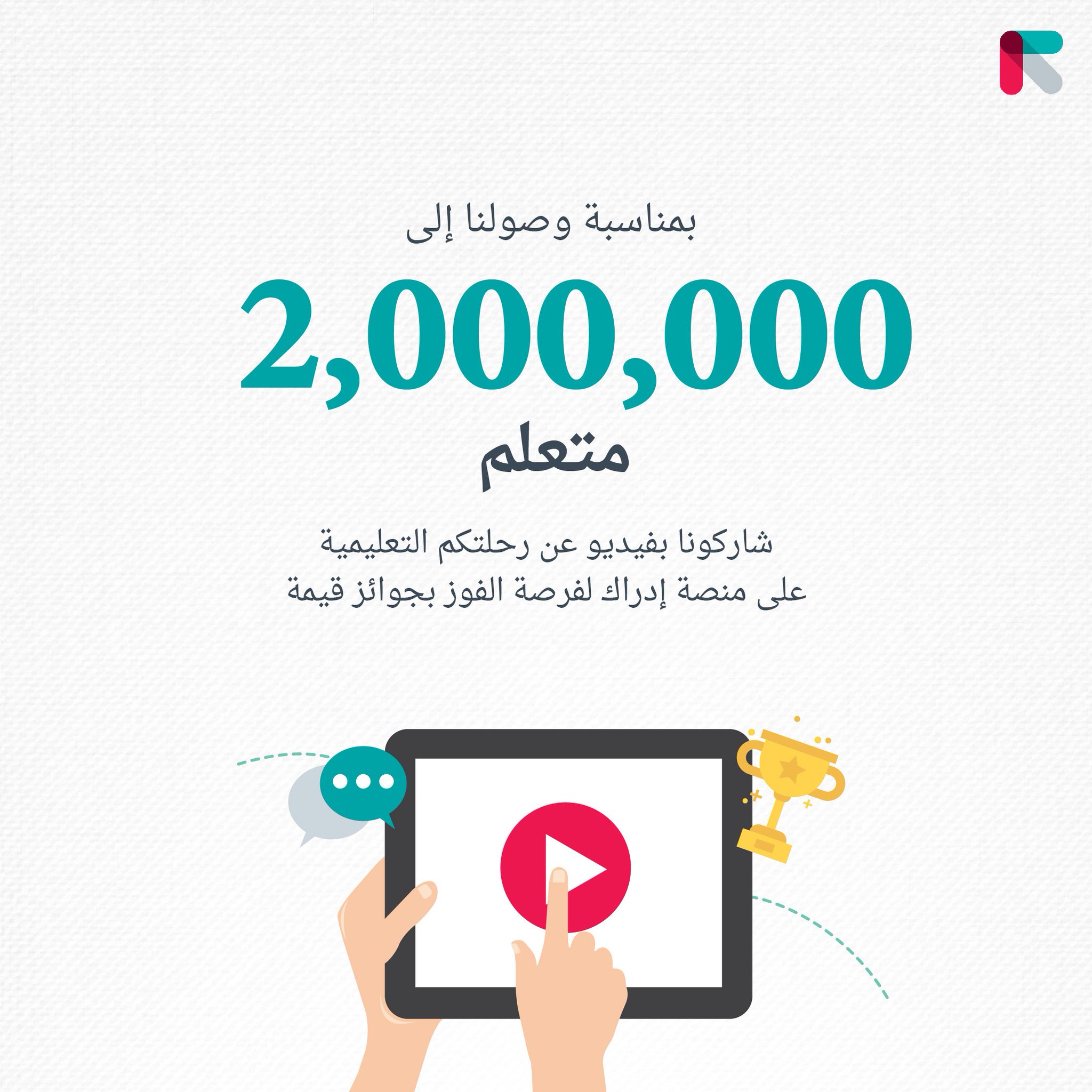 Edraak إدراك On Twitter اليوم نحتفل بكم نحتفل بـ 2 مليون متعلم على منصة إدراك ارسلوا فيديو قصير يصف رحلتكم التعليمية على منصة إدراك إلى البريد الإلكتروني Info Edraak Org لفرصة الفوز بتابلت