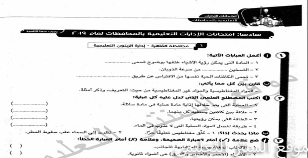 امتحانات سلاح التلميذ فى العلوم للصف الخامس الابتدائى الترم الاول 2020 للعام السابق
