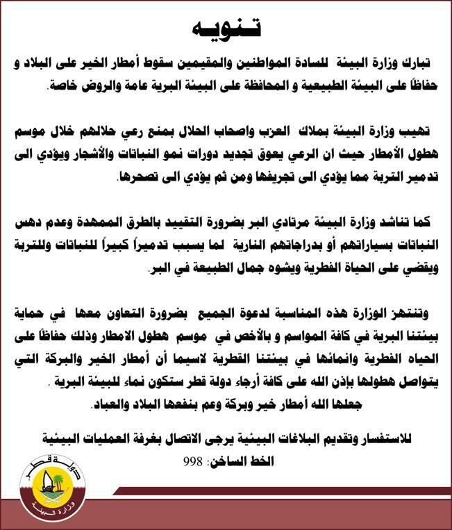منصور الشبيبي On Twitter وهنا رسالة وتنبيه مقدم لأخواننا واشقائنا في دولة قطر مقدم لكم من وزارة البيئة في قطر رتويت امطار Http T Co 7gz4zy6ptr