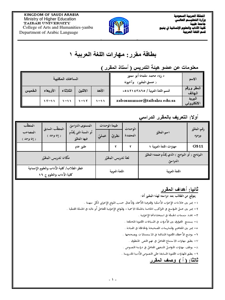 مقرر مهارات اللغة العربية 2 Gs112 جامعة طيبة مدونة المناهج السعودية