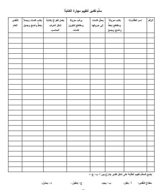 تقييم المهارات سلالم التقدير لكل مهارة من مهارات اللغة العربية كما هي موجودة في نهاية دليل مبحث اللغة العربية الموقع التعليمي Ademweb Com
