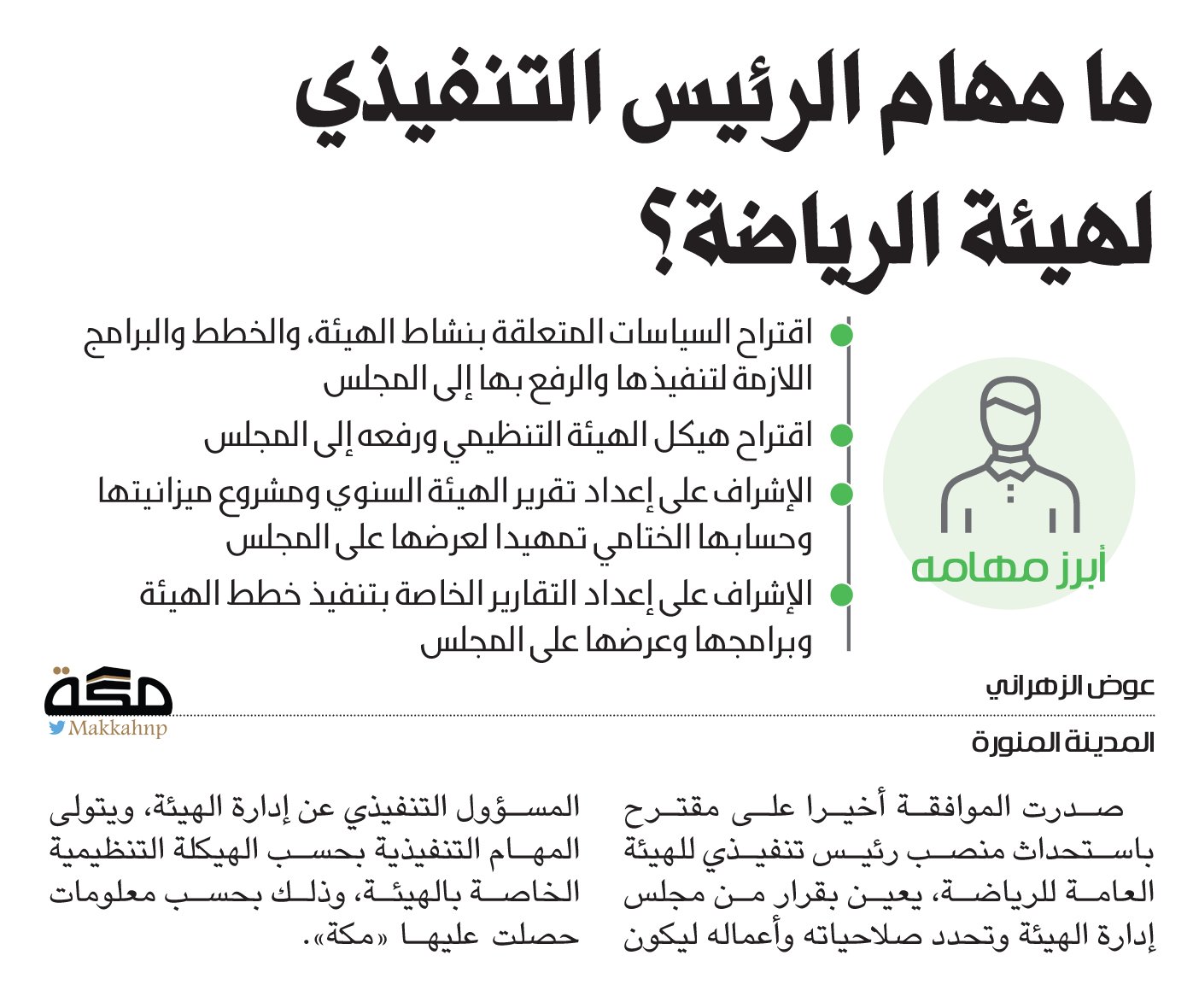 ما مهام الرئيس التنفيذي لهيئة الرياضة صحيفة مكة