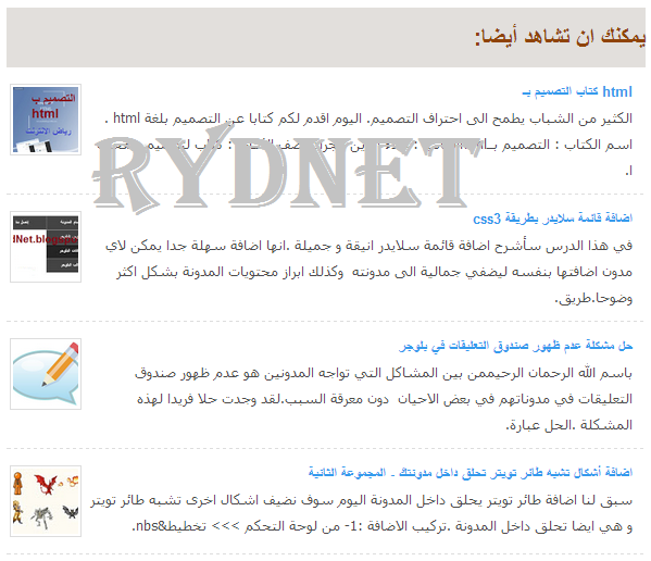رياض بلوجر اضافة مواضيع ذات الصلة مع ملخص للمواضيع و صورة مصغرة لكل موضوع