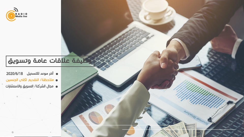 مطلوب موظف علاقات عامة وتسويق عدد 2 مؤسسة ميديا لايف برو