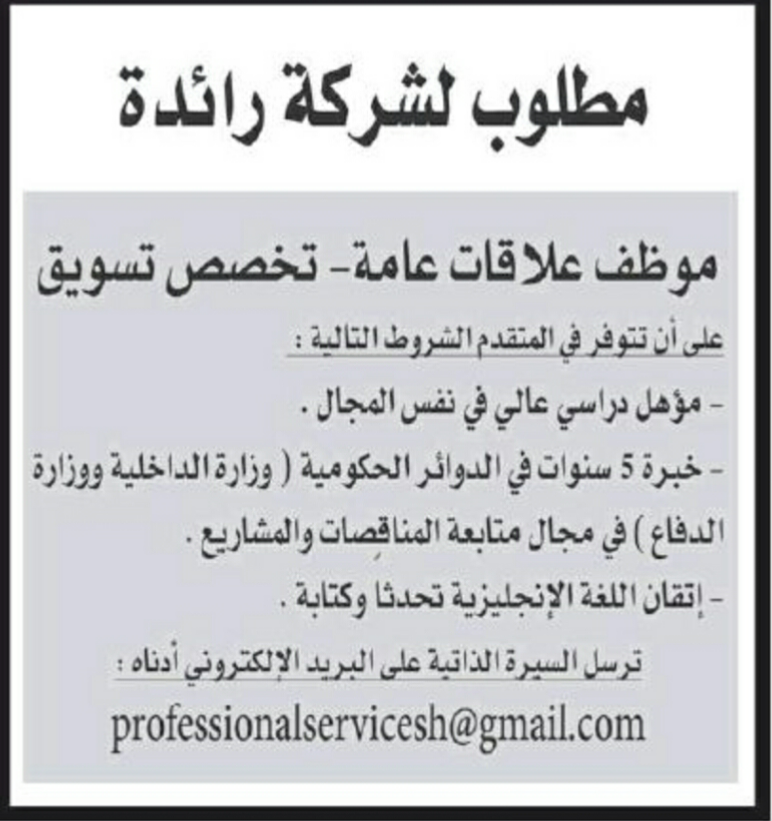 مطلوب موظف علاقات عامة وإعلام لشركة رائدة في مجال الأعمال ملتقى السعودية وظائف السعوديه وظائف شاغرة فى السعوديه توظيف السعوديه تنقيب السعوديه