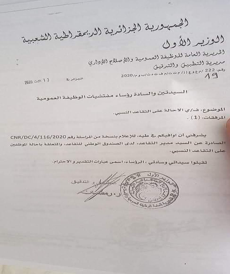 الوزير الأول يوافق على طلبات الخروج للتقاعد النسبي المودعة قبل الفاتح جانفي Algerie Global News