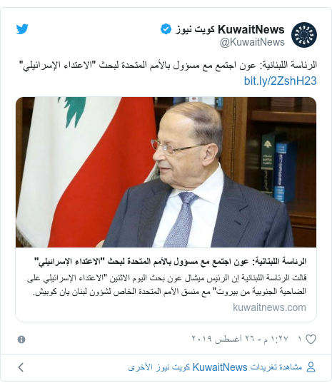 البغدادية عون على تويتر أمريكا على استعداد للعمل مع حكومة لبنانية جديدة