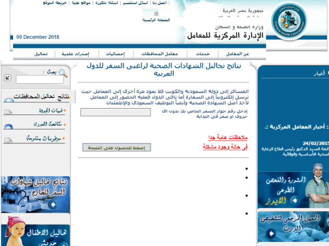 بسهولة اعرف نتائج تحاليل الشهادات الصحية لراغبى السفر للدول العربية اليوم السابع