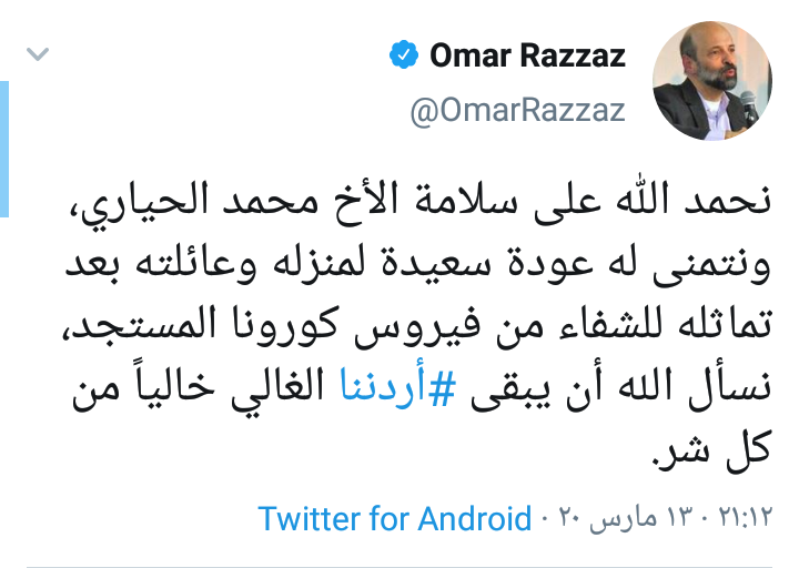 الرزاز يهنئ الحياري بعد تماثله للشفاء نحمد الله على سلامتك