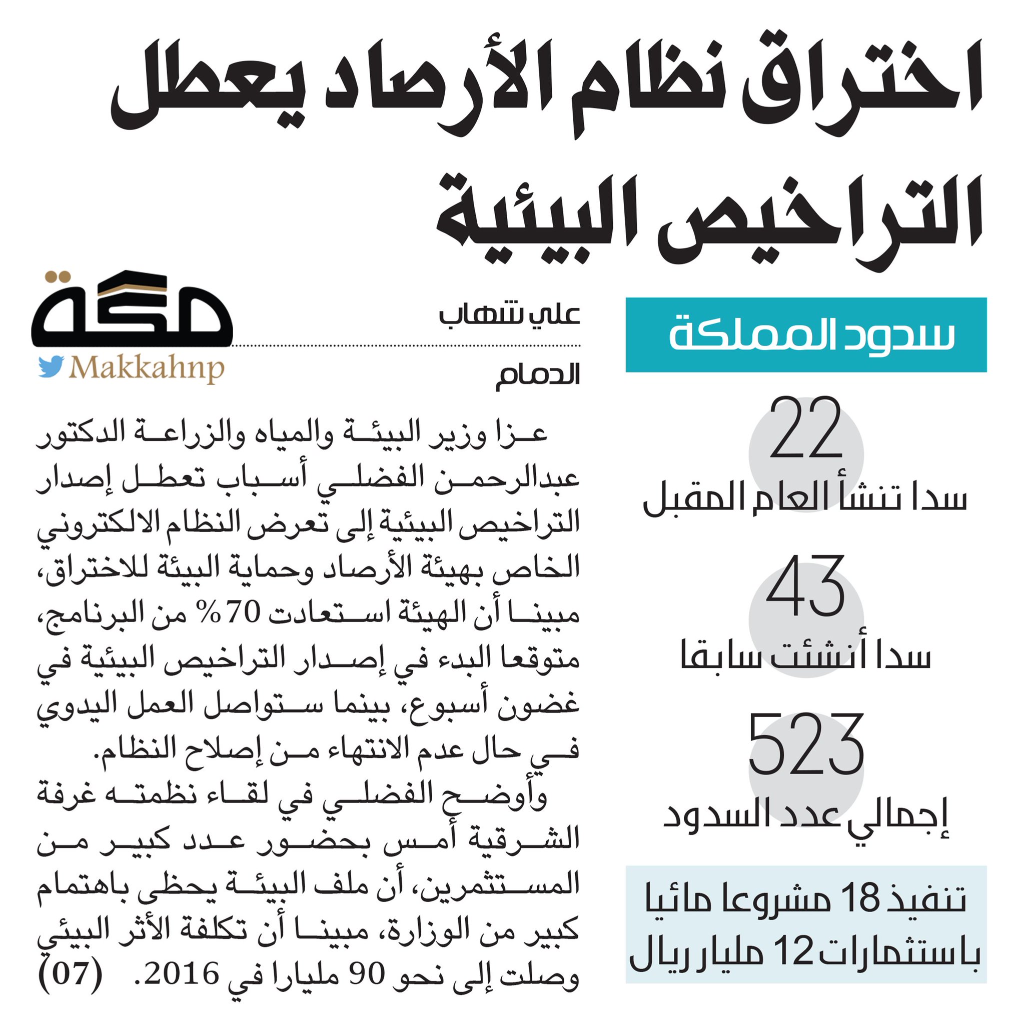 صـ حـ يـ فـ ـة مـ كـ ـة على تويتر اختراق نظام الأرصاد يعطل التراخيص البيئية Https T Co 6etwq4e92u صحيفة مكة