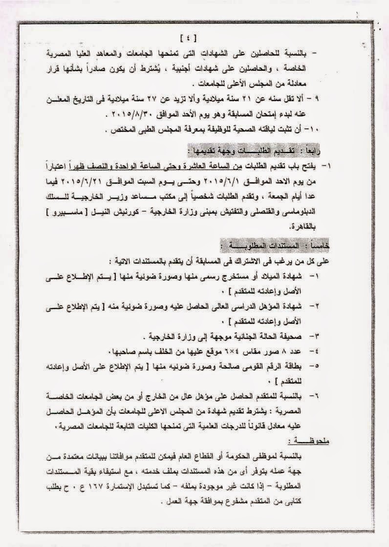 اعلان وظائف مسابقة وزارة الخارجية المصرية بالاهرام والتقديم حتى 21 6 2015