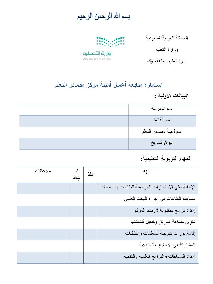 السبورة الى جميع المديرين ننشر استمارة متابعة وتقييم المدارس