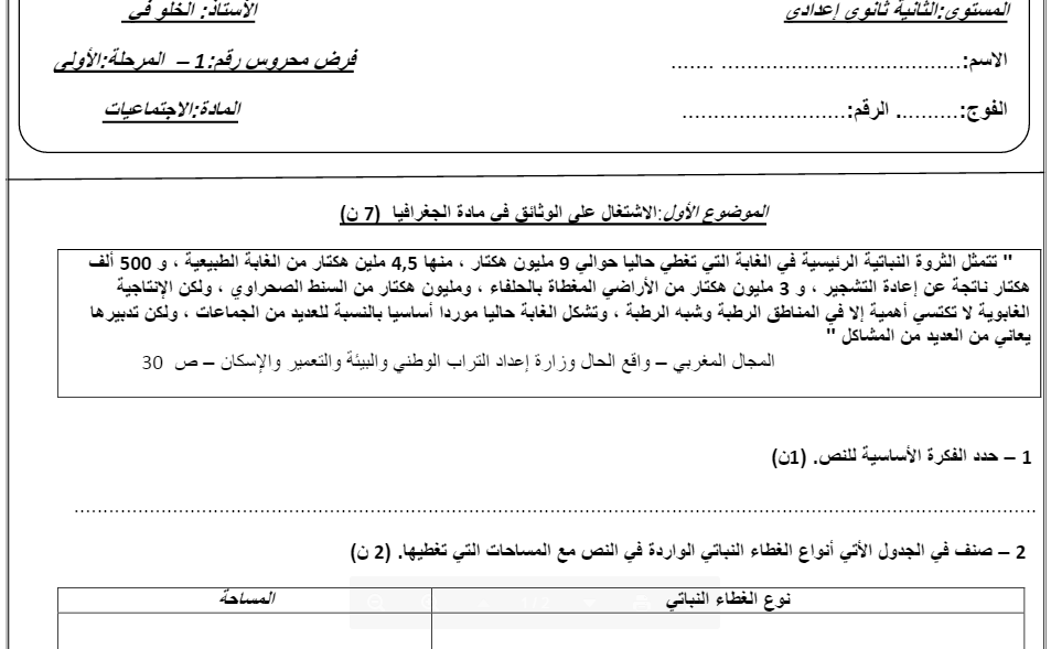 الفرض الأول في الإجتماعيات للثانية ثانوي إعدادي الدورة الأولى نموذج 8