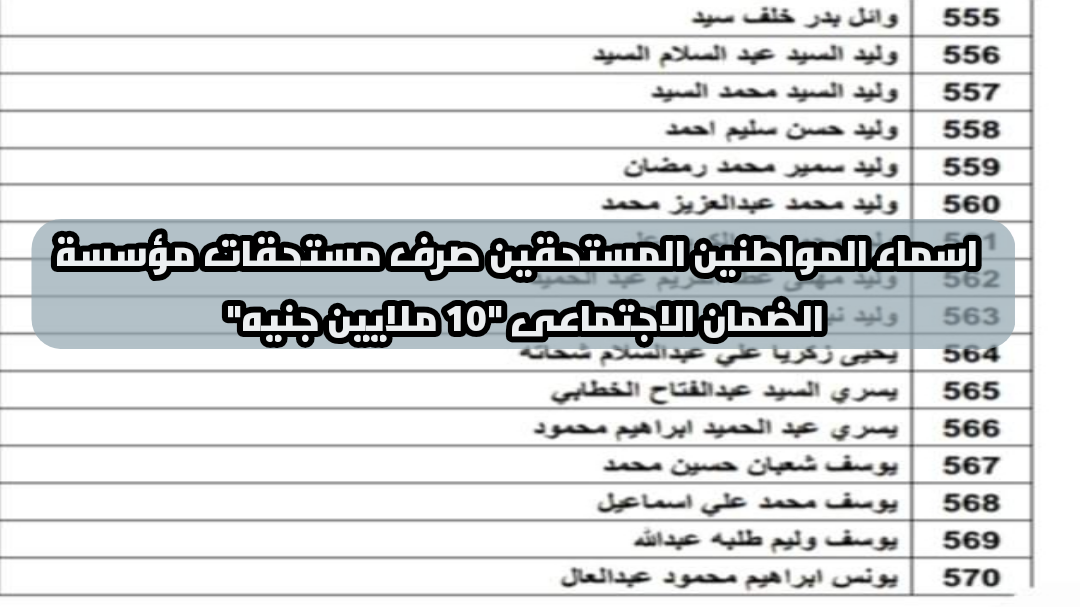 الحكومة تعلن اسماء المواطنين المستحقين صرف مستحقات مؤسسة الضمان الاجتماعى 10 ملايين جنيه