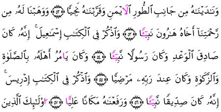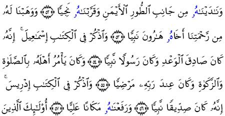 المصحف المحفظ رواية قنبل عن ابن كثير سورة مريم الآية 52