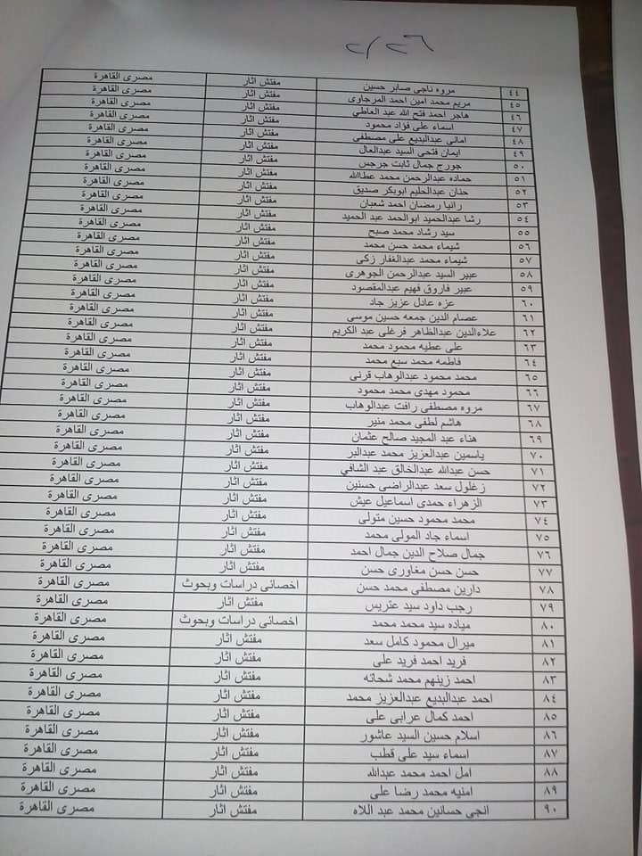 كشوف أسماء المثبتين بوزارة الأثار 2019 وجدول استلام ملفات التعيين