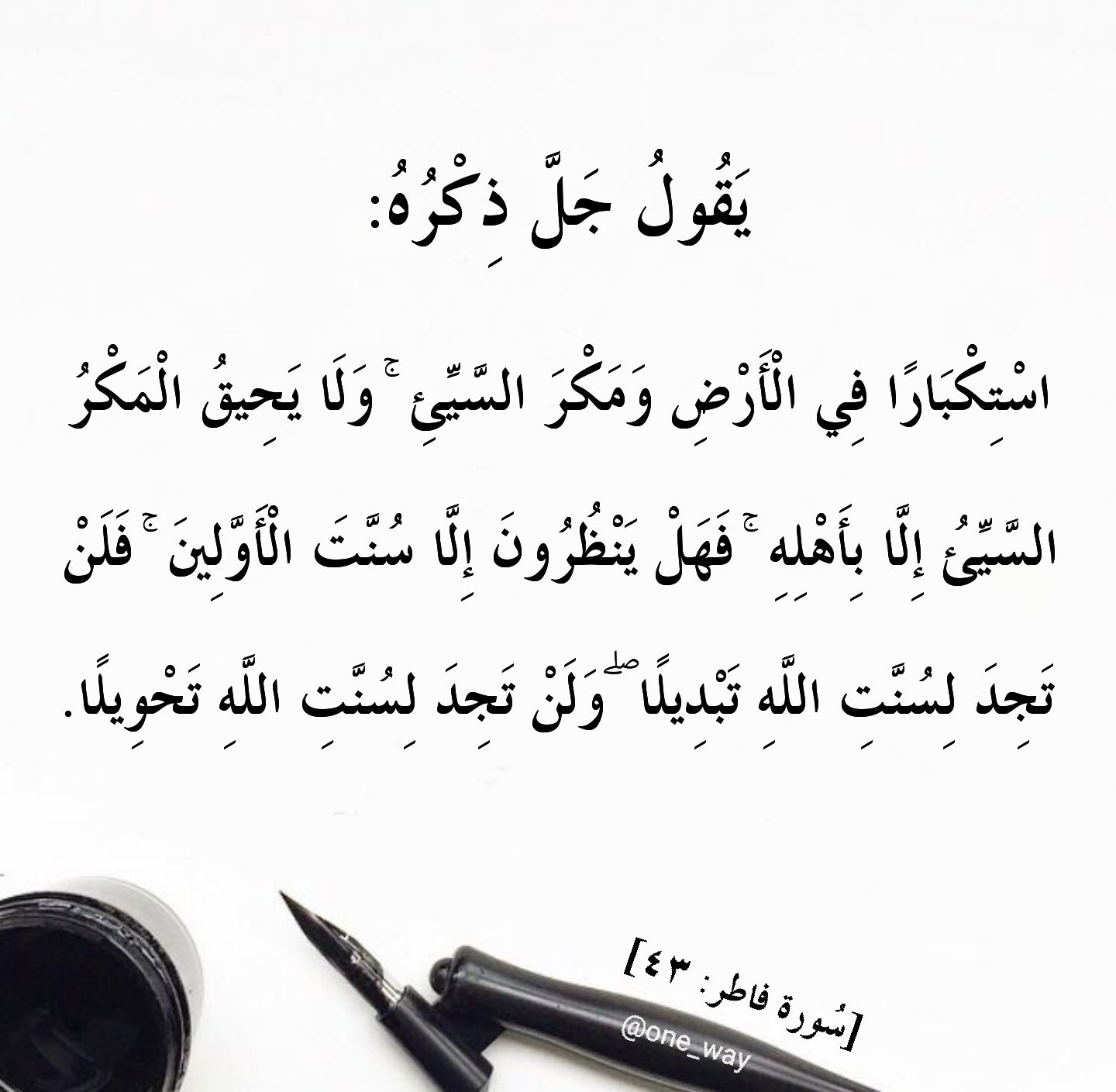 الحق لا يتفر ق V Twitter ي ق ول ج ل ذ ك ر ه اس ت ك ب ار ا ف ي ال أ ر ض و م ك ر الس ي ئ و ل ا ي ح يق ال م ك ر الس ي ئ إ ل ا ب أ ه ل ه ف ه ل ي ن ظ ر ون إ ل ا س ن ت ال أ و ل ين ف ل ن ت ج د ل س ن ت الل ه ت ب د يل ا