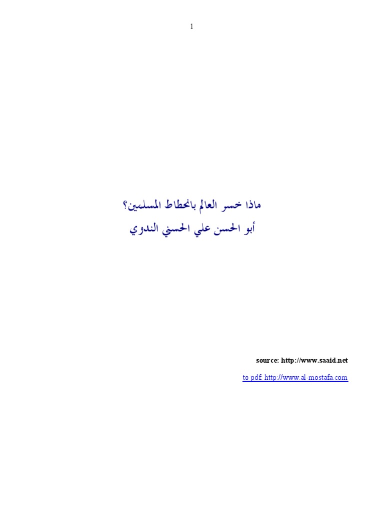 ماذا خسر العالم بانحطاط المسلمين أبي الحسن الندوي