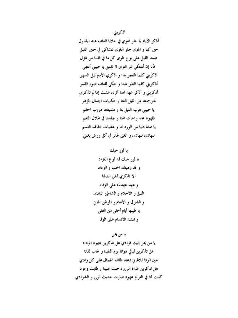 On Twitter يا اهل الهوى خاطري طايب من الولع والسهر والنوح ما عاد لي صاحب غايب ولا عاد لي صاحب بيروح كان الصبى غرني تايب وكان الوله ضرني مسموح