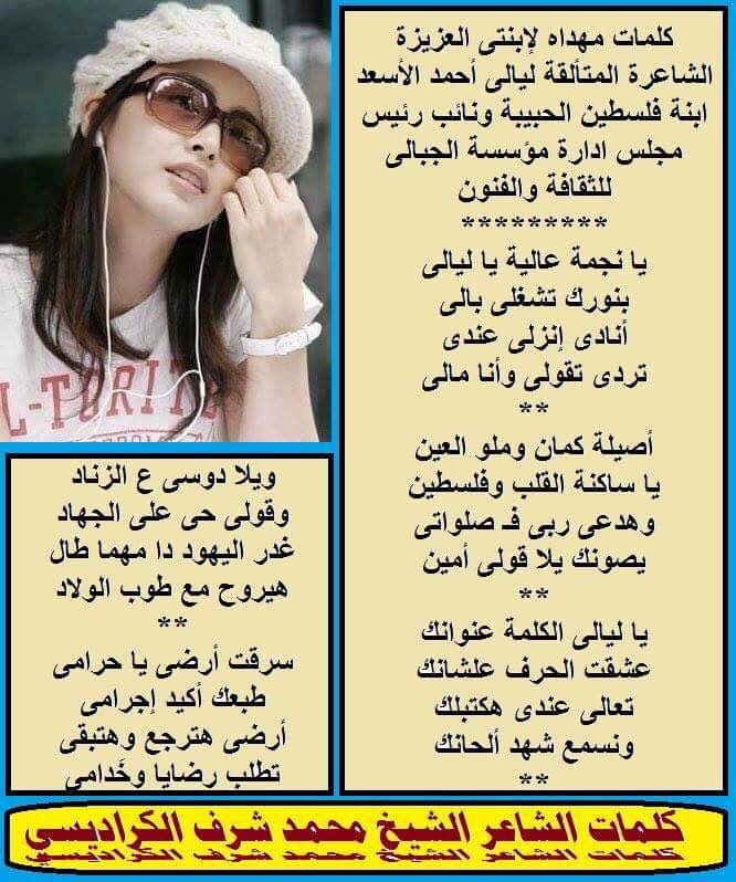 كلمات مهداه لإبنتي الشاعرة المتألقة ليالى أحمد الأسعد ابنة فلسطين بقلم الشاعر الشيخ محمد شرف الكراديسي مـجـلــة أضـــــــواء مصر