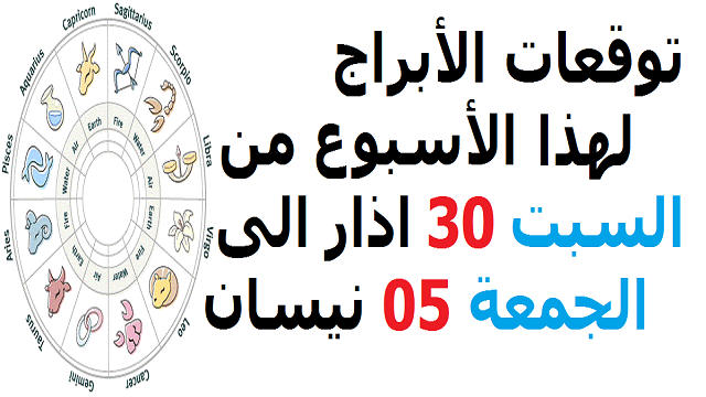 توقعات الأبراج لهذا الأسبوع من السبت 30 اذار الى الجمعة 05 نيسان 2019 حظك اليوم توقعات الابراج